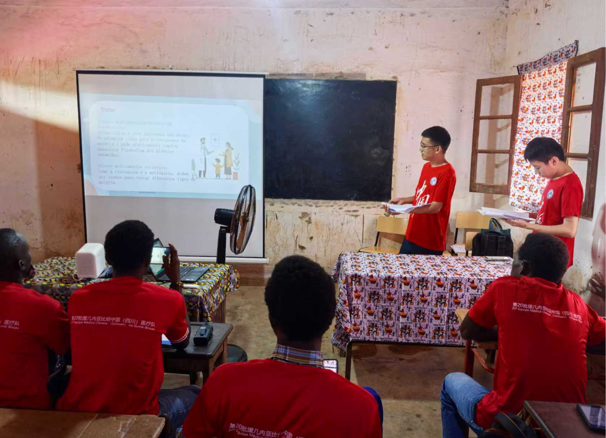 他走进学校,用生动的图画向孩子们讲解疟疾如何通过蚊子传播、如何正确使用驱蚊剂。在偏远社区义诊现场,他一边为民众免费检验,一边培训当地卫生员识别常见疾病症状。